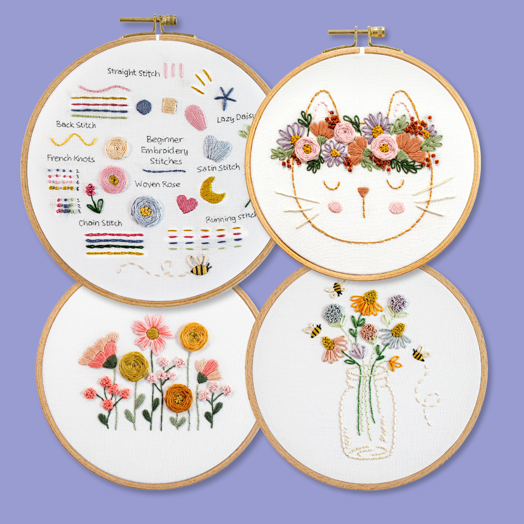 Discover the joy of embroidery with our Best Seller Bundle, featuring four of our most popular beginner-friendly kits. Whether you're stitching solo or sharing the fun with a friend, this bundle has everything you need to get started.