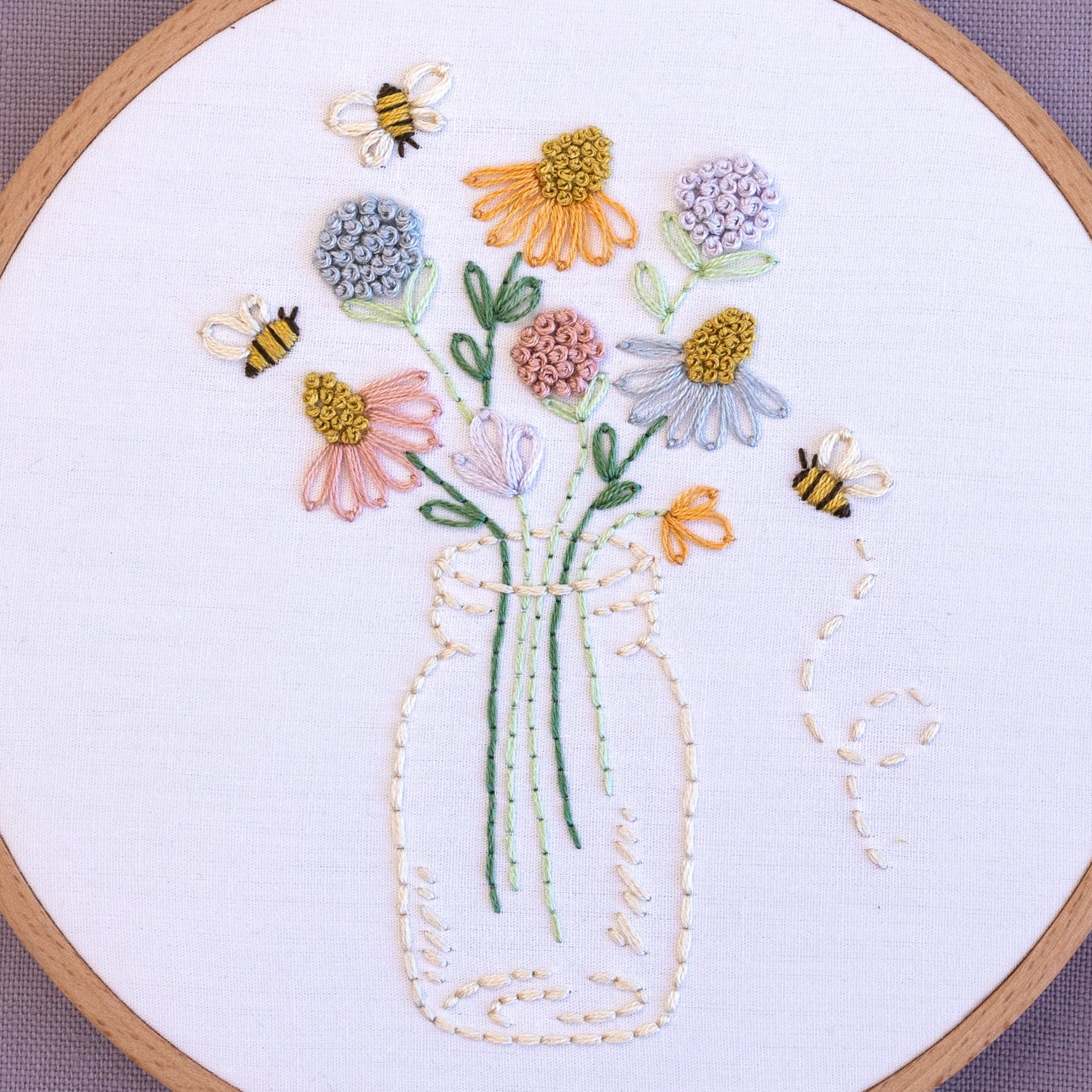 - Two bouquet-style beginner embroidery kits (perfect as a gift), with all the supplies you need to get started with learning embroidery