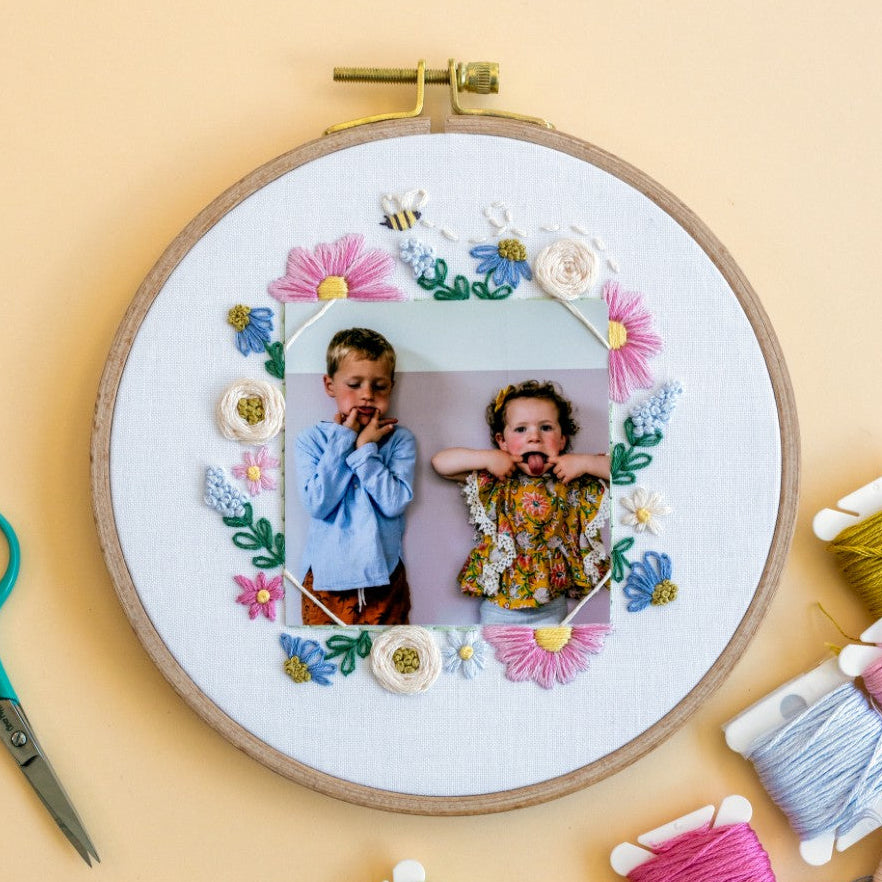 - Two Floral Frame beginner embroidery kits (great for personalizing with a photo), with all the supplies you need to get started with learning embroidery