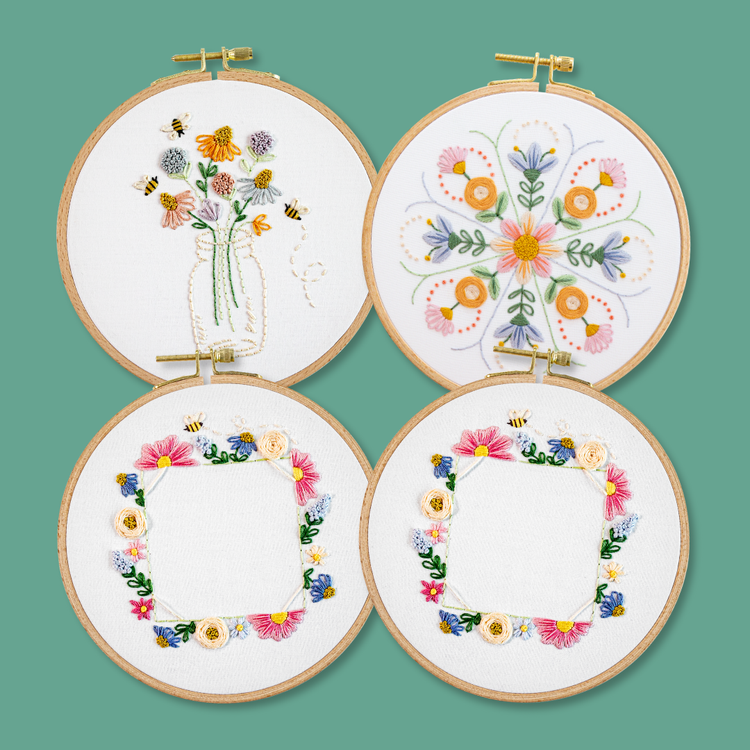 - A bouquet-style beginner embroidery kit (perfect as a gift), with all the supplies you need to get started with learning embroidery