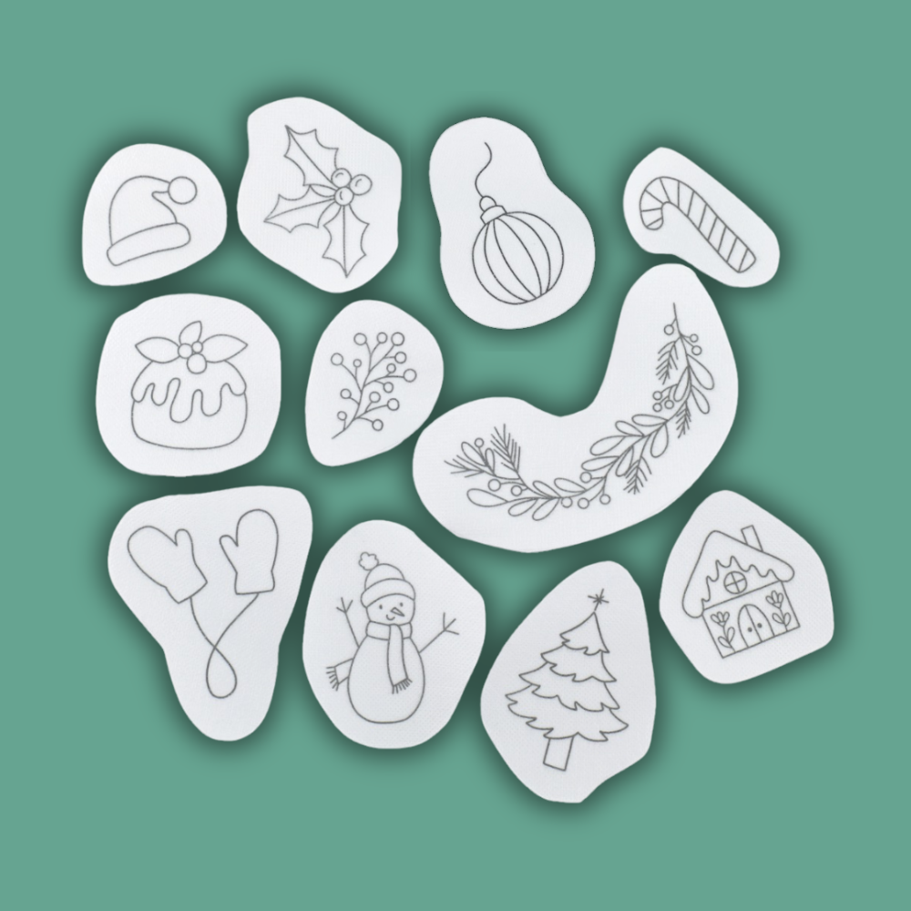 This set of little festive designs is perfect for stitching onto Christmas themed clothing and accessories. Each motif is designed as quite a simple shape - the idea is that you can fill them in with whatever stitches and colors you wish. Enjoy personalizing your Christmas décor!